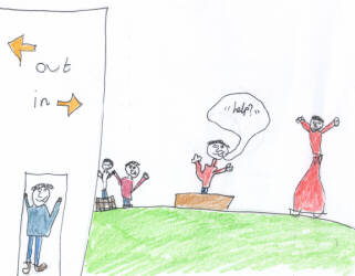 | You have decided to go through the old brown trapdoor that is backstage, Then you go through a long, black thin tunnel that leads outside Toyworld. Then in the long, thin low tunnel you see a scary tarantula! Then you go a little further and you stand on a rat's tail and it goes squeak! You are a little alarmed. Then you see a black piece of card at the end of the tunnel and you go and see what it is and you go and the tunnel is blocked except for the tunnels at the side. | ||
