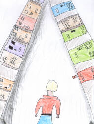 | You decide to visit the house with a hundred doors. Most of the doors are fake. Some of them are painted. Some of the rusty handles fall off and a lot of the doors have a brick wall behind them. This is very confusing! | ||