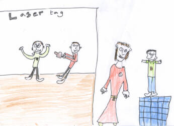You decide to go and have a game of laser tag. You start the game and you are playing. Unfortunately there is lots of smoke around the place and you are coughing and it sets your asthma off. You have to be taken to the medical tent and you are going to be in big trouble because your parents have been called and you haven't found your brother yet because you have been playing laser tag. THE END |