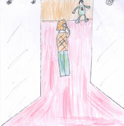 You follow your little brother out of the hall of mirrors and into the big scary haunted house. You see cobwebs all over the walls.