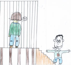 You decide to go through the door to search for your brother. You go through the door where there are lots of traps and cages. You try to avoid the cages but one of the cages traps you and your brother is laughing at you. THE END |